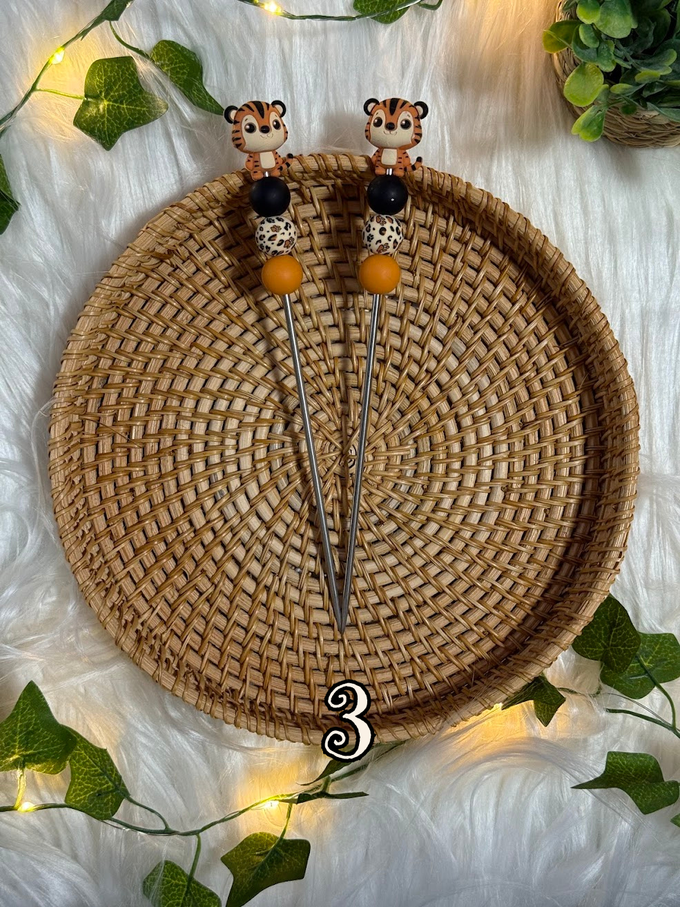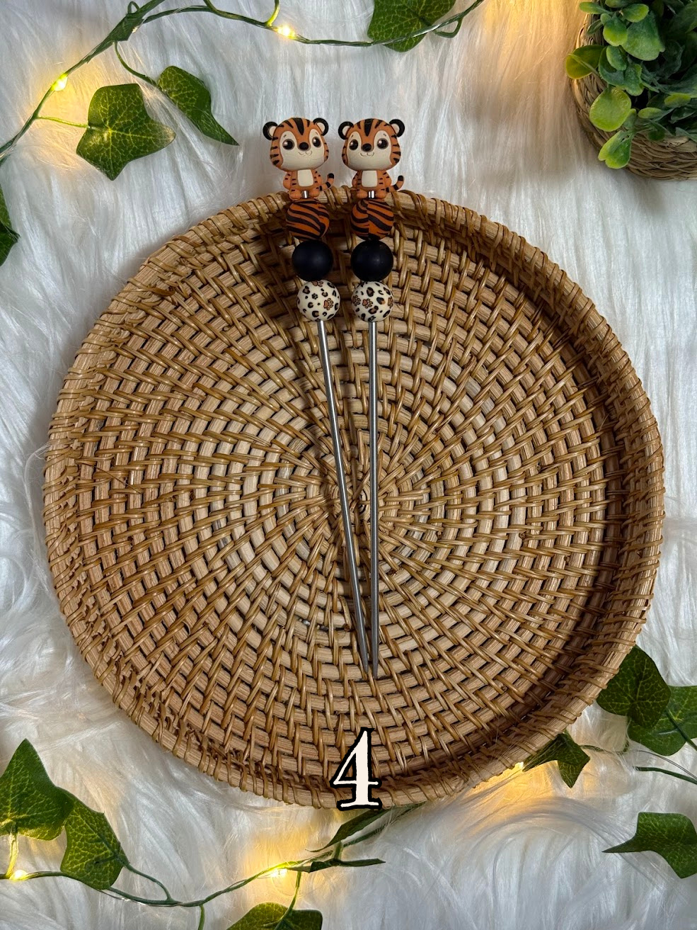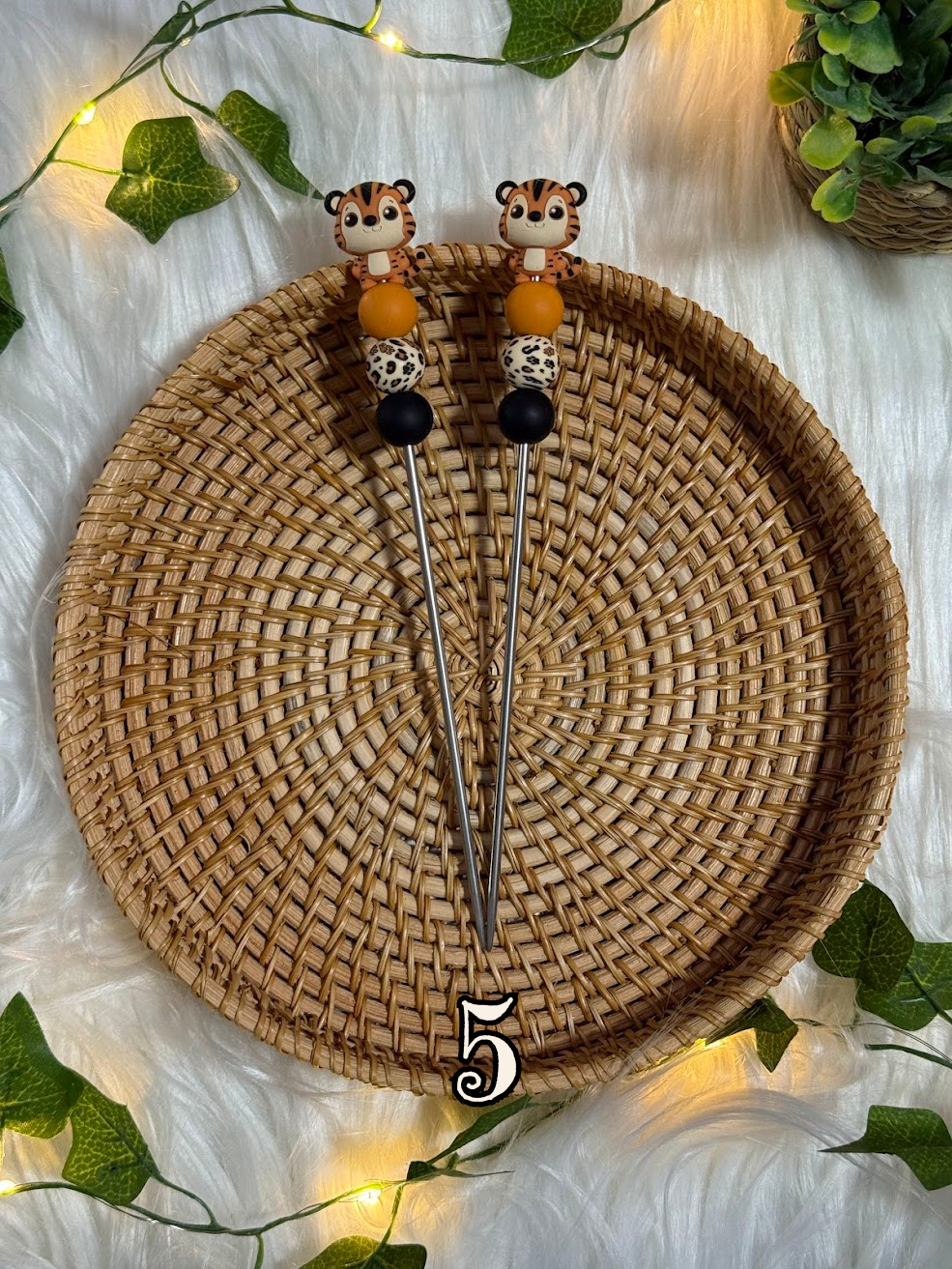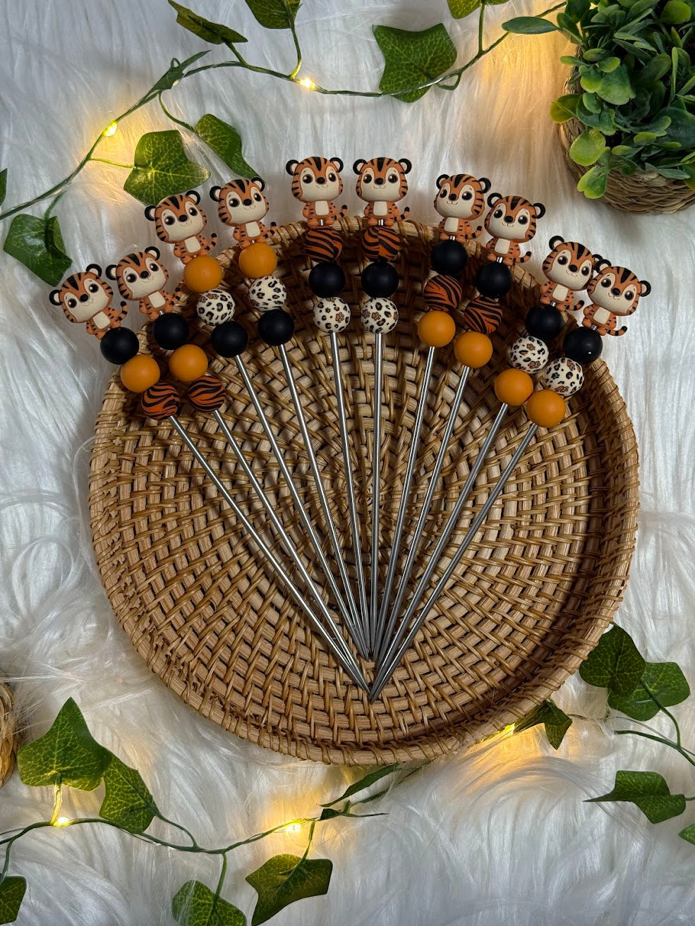 - Décorations en perles et motif tigre